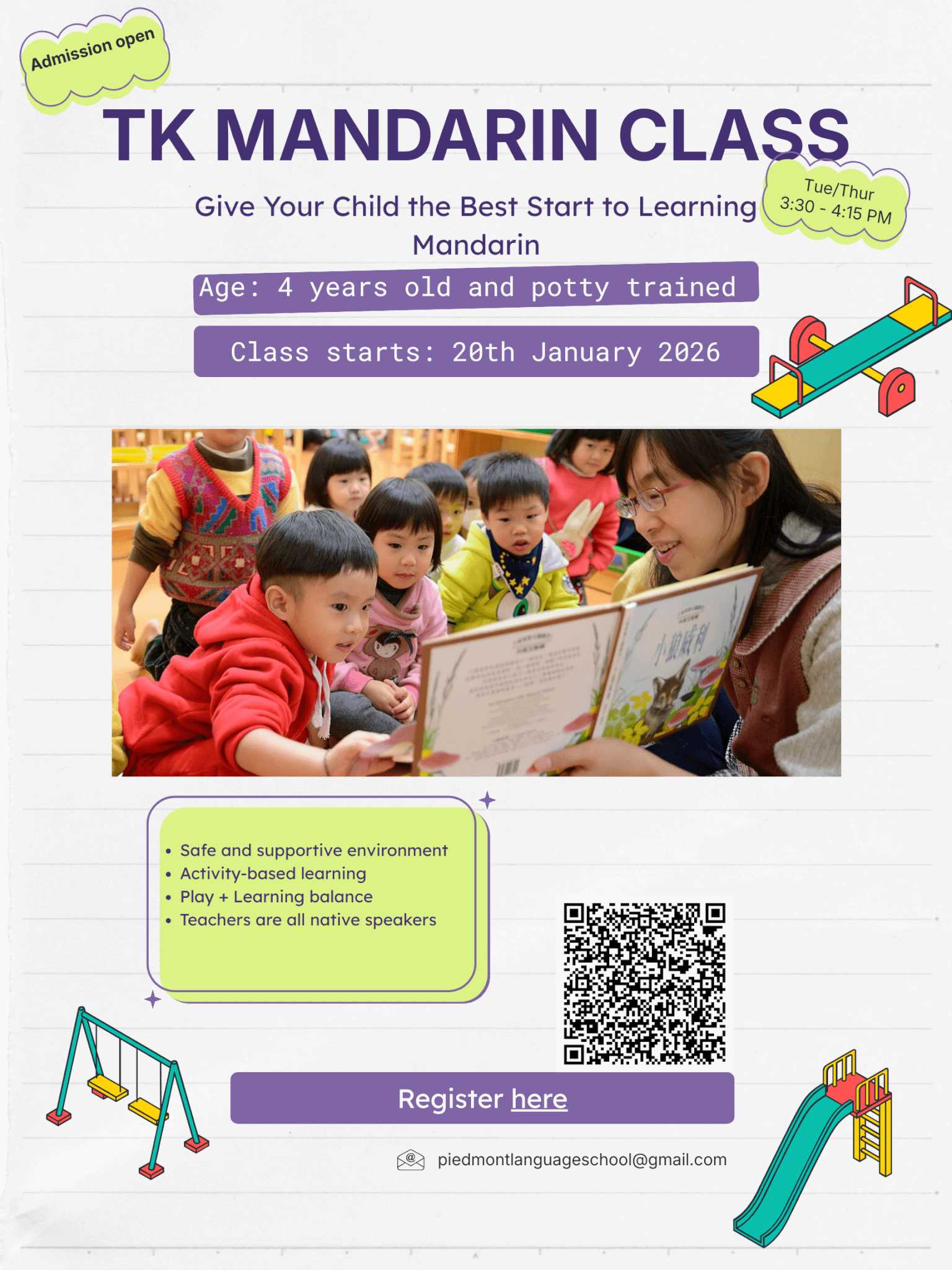 Our new TK Mandarin Class is for potty-trained 4-year-olds and features: