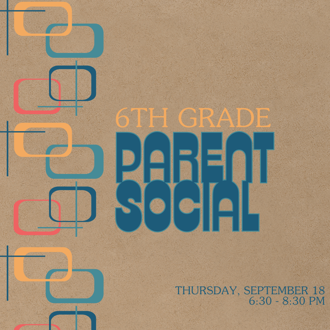 Join us for our 6th Grade Parent Social! Connect with old friends and meet new friends as you enjoy a relaxing night celebrating the beginning of the school year.