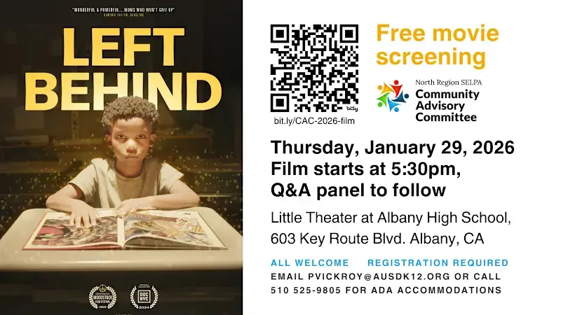 A request for interpretation or disability-related modification or accommodation may be made by a person with a disability who requires modification or accommodation by contacting the North Region SELPA Director, at pvickroy@ausdk12.org or 510 525-9805