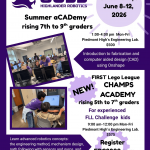 NEW! FLL Champs Academy for FLL-C rising 5th-7th grade Highlander Robotics is pleased to announce a new summer camp for experienced FIRST Lego League–Challenge (FLL-C) kids! Highlander Robotics software team members will teach advanced robotics concepts, including the engineering method, …